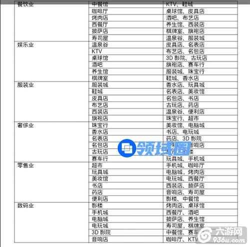 店铺的相邻匹配是最容易也是最先满足的加成,每个玩家都不应该错过。店铺所属行业和相邻匹配加成建筑可以参考下面的表格,按照这个表可以得到3*3也就是8个店铺的循环,中间留一个建造人工湖之类的加成建筑。