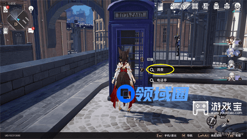 2.随后我们靠近电话亭,就会出现【调查】选项,我们选择【调查】,简单的完成一段对话剧情就算是OK啦