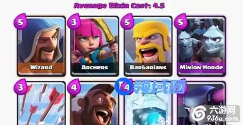 箭雨:对付苍蝇群、人海流的哥布林、哥布林桶、骷髅群的最佳手段。本套卡组唯一的可绕过防守兵的斩杀手段,伤害低,请记好对塔伤害再使用。