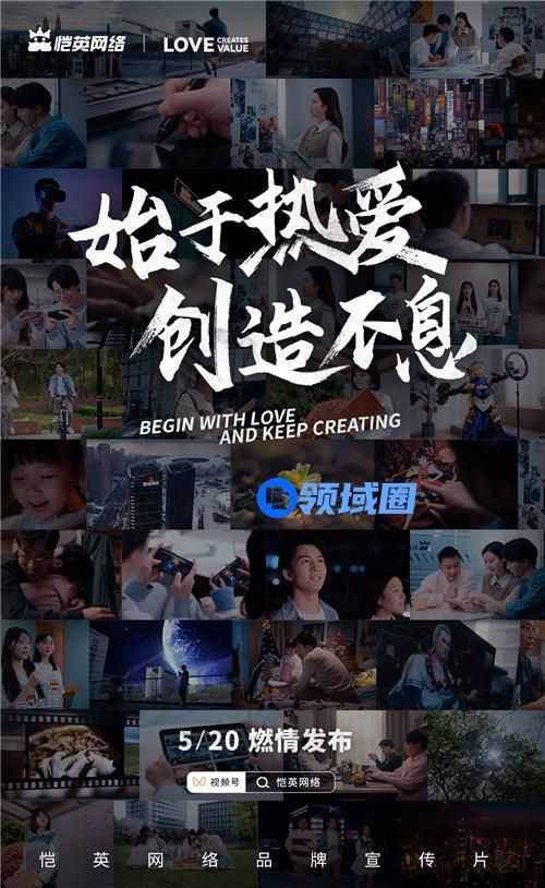 5月20日,恺英网络年度品牌宣传片《始于热爱,创造不息》全网发布,借520的概念传递公司一直以来践行的“热爱创造价值”信仰,讲述与行业、从业者、玩家的缔结的奇妙链接,以热爱为初心的不断坚持与创造。