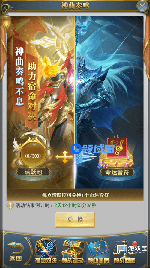 活动期间日常获得的活跃值将会存入活跃池中,可消耗活跃池中的活跃点数兑换命运音符进行回忆,1点活跃点数兑换1个命运音符;
