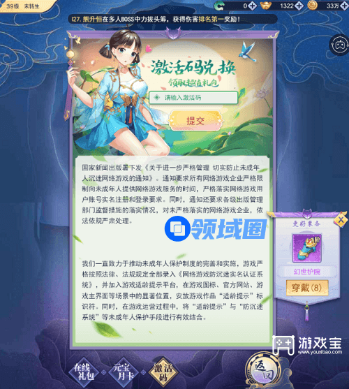 2、玩家达到一定的等级以后即可开启福利系统,进入福利系统后点击激活码,复制上面的兑换码后粘贴上去提交即可领取了。