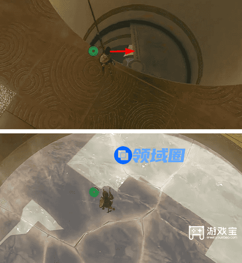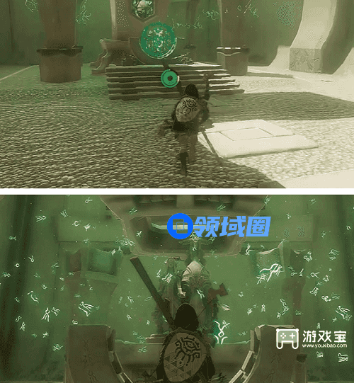5、从对面出来后是到达神庙的这个位置,这里就是神庙中最后要去的位置,启动这个圆盘,这个神庙就通关了。