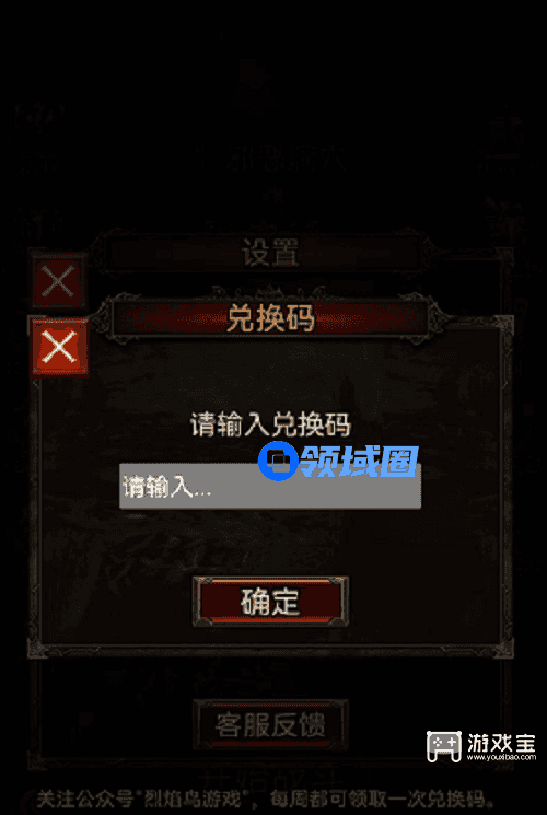 2、进入游戏中在左边点开设置,点击兑换码,输入上面的兑换码以后就可以领取了。