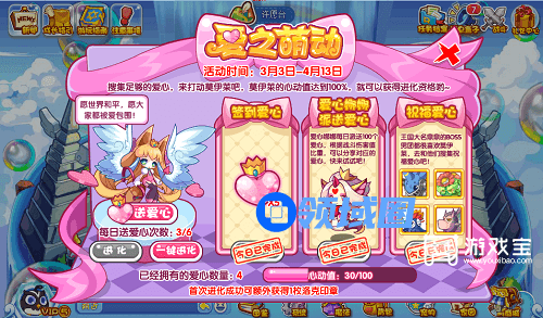 洛克王国爱之萌动需要玩家搜集足够的爱心来打动莫伊菜,莫伊莱的心动值达到100%就可以获得进化资格,游戏宝小编带来洛克王国爱之萌动攻略,希望可以帮到大家。