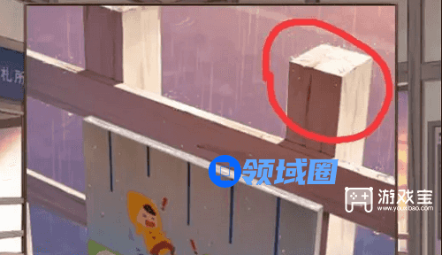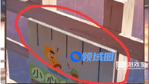 屋外有一个小心水滑的提示板,点进去看到五条长短不一的线对应着投票箱位置五个长条的解谜