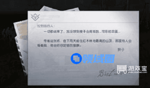 1、这个任务首先会获得一封写着接头内容的信,看到信里写着让玩家去红木林最高的山顶去找接头人