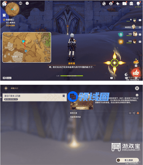 ①前往「神王之遗」的藏身处,进入遗迹,建议携带雷元素角色。