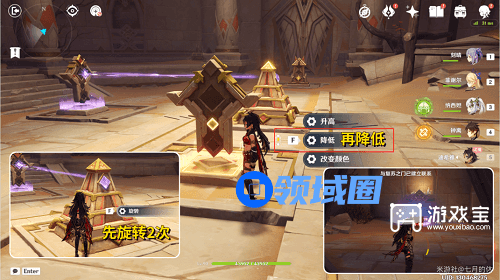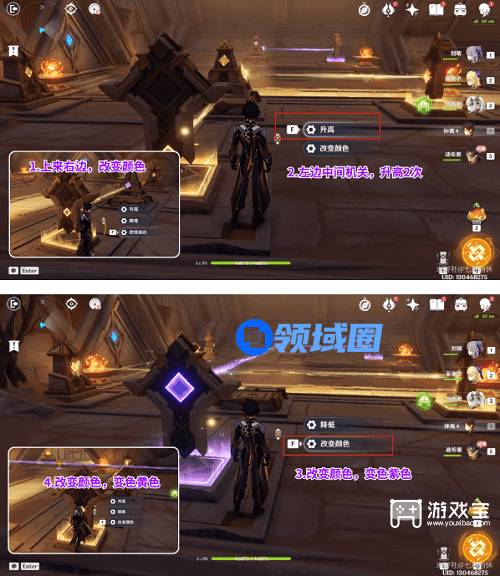 ⑵再来到左边中间的机关,升高2次,机关就会下沉