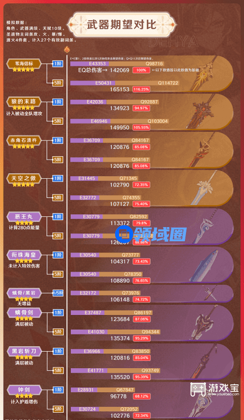 下图也模拟计算了一下部分武器的期望伤害对比,仅供参考: