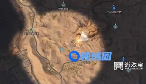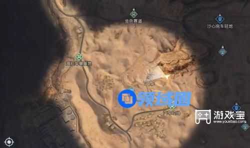1、根据下方地图的位置找到宝箱的所在地【6297,-884】,找到位置后就可以前往寻找到,这次的宝箱就在沙地上埋着大部分可以直接看到。