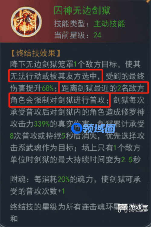 ④剑狱每承受一次普攻,被囚禁者就受到一次真实伤害。