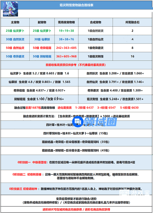 创造与魔法菇灵荆怪是最近出的全新融合宠,玩家需要把几个合成宠物合成到一起才可以融合出菇灵荆怪,游戏宝小编带来创造与魔法菇灵荆怪融合表一览,一起来看看吧。