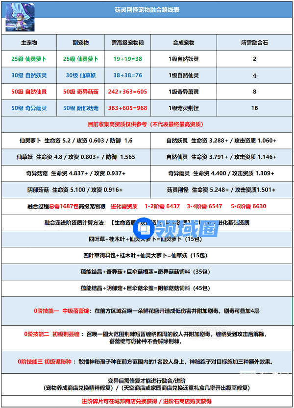 2、四叶草饲料包+桂木叶+仙灵大萝卜=仙草妖(15包)。