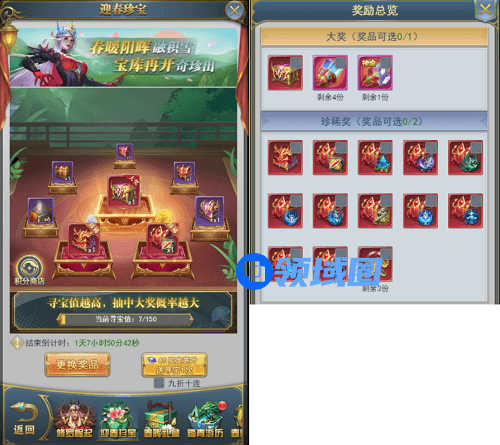 可自由选择自己想要的奖品,其中可以选择1个大奖、2个珍稀奖、5个普通奖;抽奖过程中可随时更换自己想要的奖励
