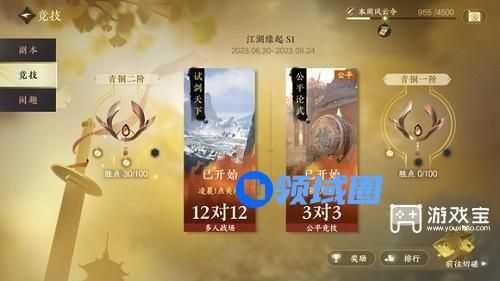 3、第三个就是试剑天下的12V12模式与工评论武的3V3模式,达到黄金5就可以拿到一件金色装备,打的越高拿到的也就越多。在开服初期几天等级都有上线的情况下,上分的速度还是十分可观的,所以抓住这段时间做完主角就去努力上分吧。