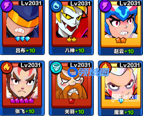 3、关卡数上来后,单英雄血量扛不住,建议前排+多1个关羽、布鲁斯李等协助抗伤害,吕布等级700级后才能吸血续航。