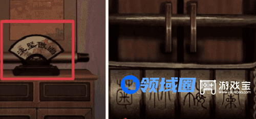 6.点击柜子,根据柜子上的扇子上的字(从右到左:幽傲坚淡),结合戏台椅子上的线索,调整密码锁