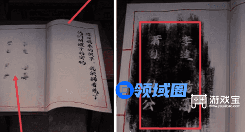 20.(一楼-柜台)点击查看桌子上的书,用【木炭】描笔迹,获得线索(从上到下从左到右:萧月、李逵、包公、杨藩)
