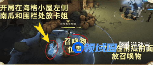 3、开局走到海格小屋左侧南瓜后方召唤卡姐(位置如图),这个位置没有暴风,全程自己丢才华药水快速过牌,在卡姐前面放召唤物,统统加护和闪回留手牌。