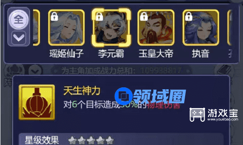 4、阵容推荐(物理系):轩辕+5星太白金星+3星(金)杨千嬅+李元霸+超级神猴