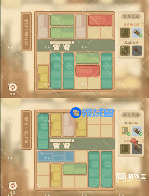 桃源深处有人家悟证若二日一共两个关卡,玩家需要移动木板让人物移动到下一层,游戏宝小编带来桃源深处有人家悟证若二日攻略,希望可以帮到大家。