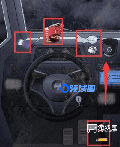 2、进入夜班车环节,先将车上的所有垃圾放置到垃圾桶中。