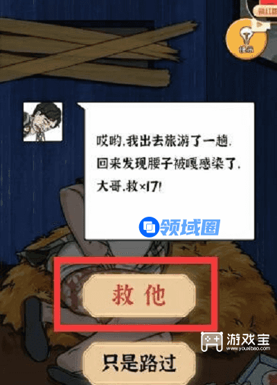 2、点击草堆上的富豪,然后玩家可以选择【救他】、【路过】。