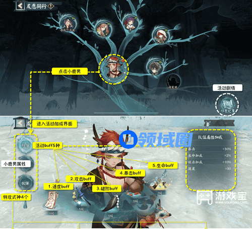1、集合了活动剧情、伙伴羁绊、活动buff、特攻式神等。