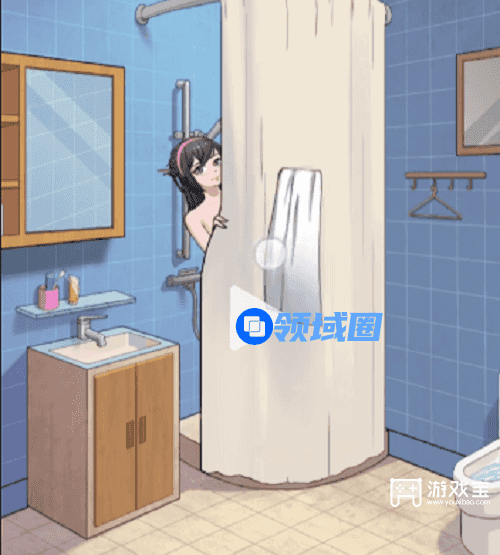 1、浴室场景:先把发卡取下来,然后再把浴巾给她。