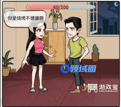 4、吃烧烤,把放屁的狗拖到第一选项,变成那吃个屁,击飞。