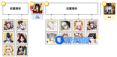 【替换】太多可选择,总体可分为前置增伤和后置增伤,如图任选搭配,注意工具人鬼吞+绘卷需绑定一起使用,薰需前置超黑锁普攻(图上未列)等特殊情况
