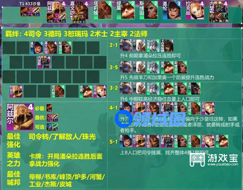 云顶之弈s9赛季中有很多阵容都可以体验,其中T1的433沙皇很多玩家不知怎么玩,游戏宝小编带来云顶之弈433沙皇阵容玩法攻略,一起来看看吧。