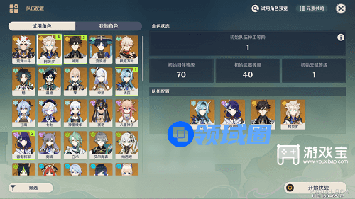 1、试用角色:优菈+雷神+钟离+阿贝多