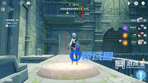 然后打怪,操作上同理,钟离eq,雷神e,优菈e,平a,开大招马上切人,通关。