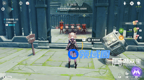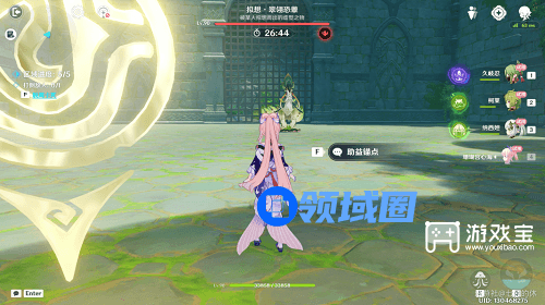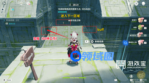 开启宝箱,邀请角色:草神,把女仆换下去。buff选充能。进入下一个区域