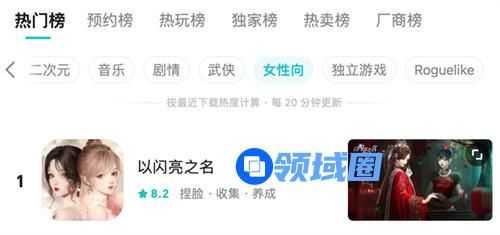 也正是因为这样的高技术力,以闪自上线后就广受好评,目前在TapTap女性向热门榜位列第一,还以8.8的高评分排在B站口碑榜上。