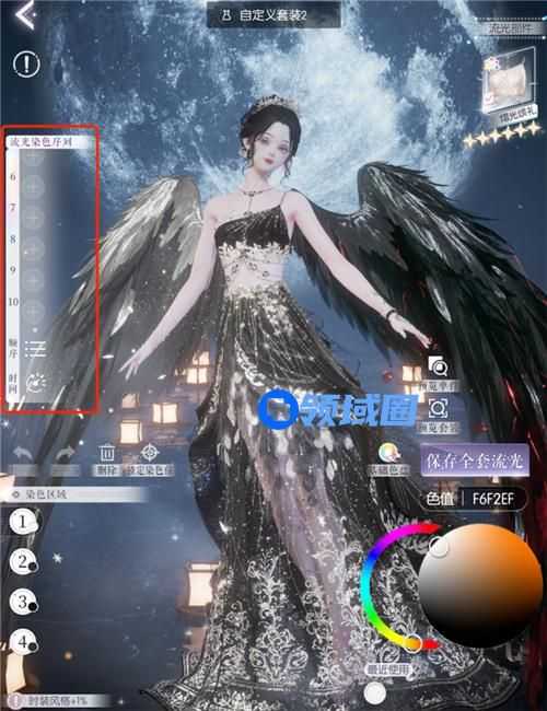 解锁千幻色域后,会同步解锁千幻流光的功能,也就是玩家所说的呼吸灯。在染色序列一栏可以看到一共能保存10种染色方案,保存后服装颜色就会在这几个方案中轮流变幻了,并且变幻的颜色顺序、间隔都可以自行调整。