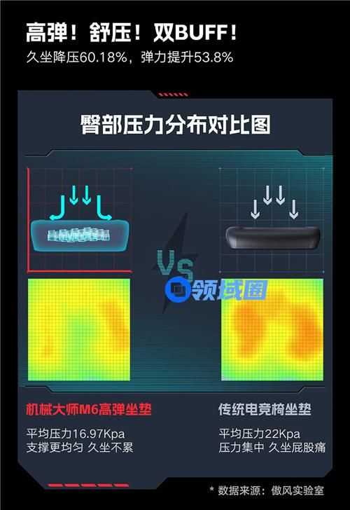傲风开创性地在电竞椅坐垫里加入了16个定点弹簧和15CM加厚定型棉,这一设计使得坐垫具备更高的弹性和舒适感,相较于普通电竞椅坐垫,其弹力提升了53.8%,在长时间久坐时,还能降低压力达到60.18%,为电竞玩家提供舒心的游戏体验。