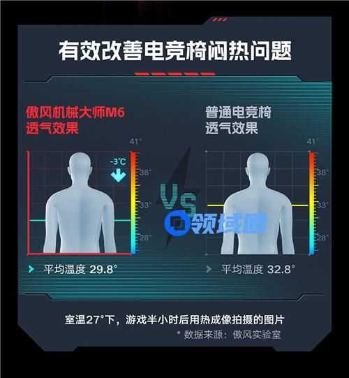 傲风基于对职业电竞选手14-16小时久坐的观察,根据其对于腰部、手臂、臀部的支撑需求,推出了傲风机械大师M6电竞椅。傲风新品颠覆传统电竞设计,将电竞玩家需求结合人体工学设计,开创全新「电竞工学」。