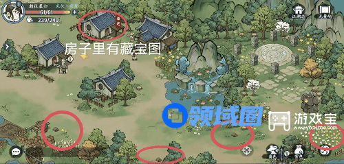 2、其他位置的宝箱和藏宝图可以参考上图红圈的位置进行翻找。