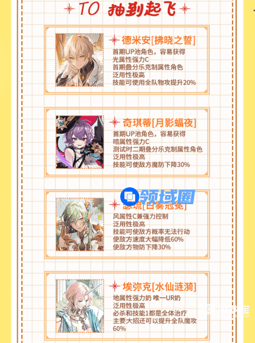 4、配队中3个角色需尽可能包含减防、加攻、治疗三种状态,随后再考虑状态时间及状态等级。