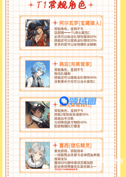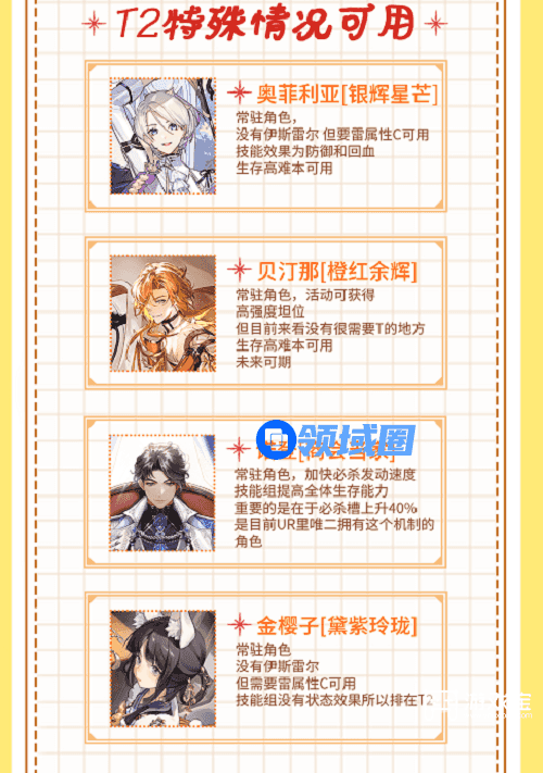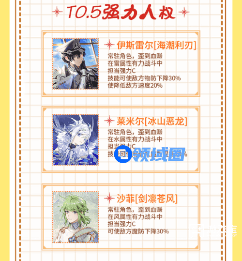 2、同属性角色的排行根据技能组的数值和状态来判断T度。