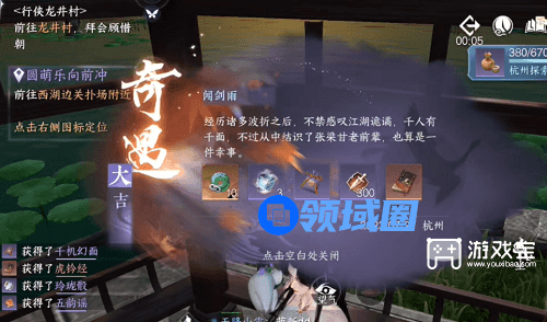2、前往杭州(1050 1002)选中董青花使用动作-探索"自信握拳"触发奇遇。