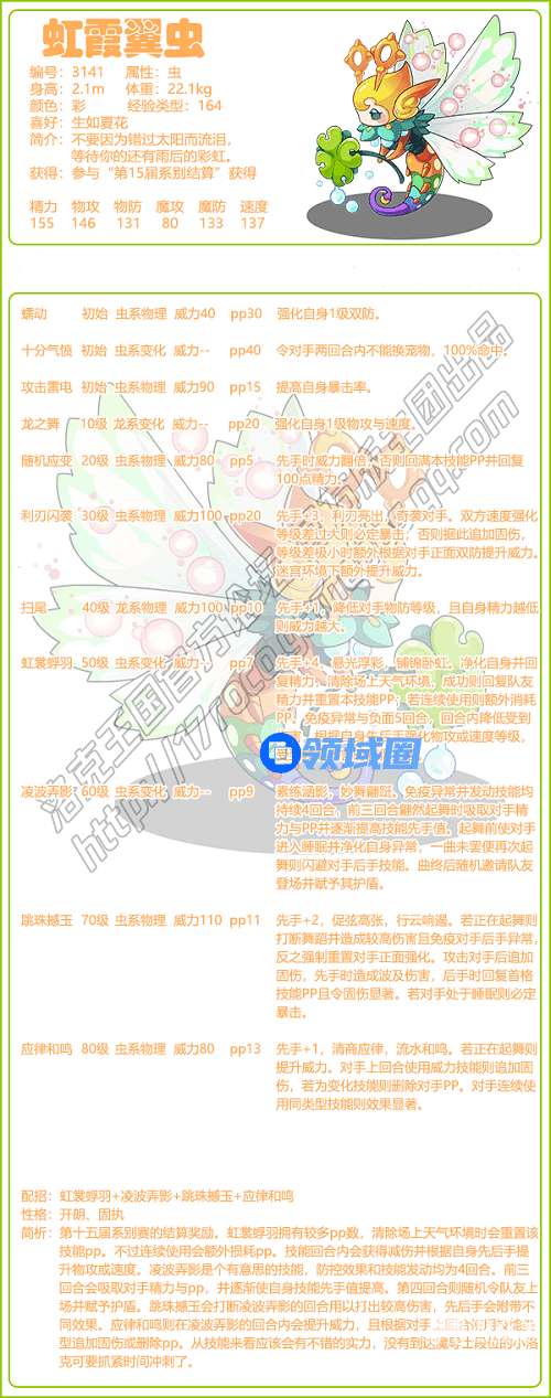洛克王国虹霞翼虫技能表可以让玩家快速了解这个宠物的技能和属性,游戏宝小编带来洛克王国虹霞翼虫技能表,希望可以帮到大家。