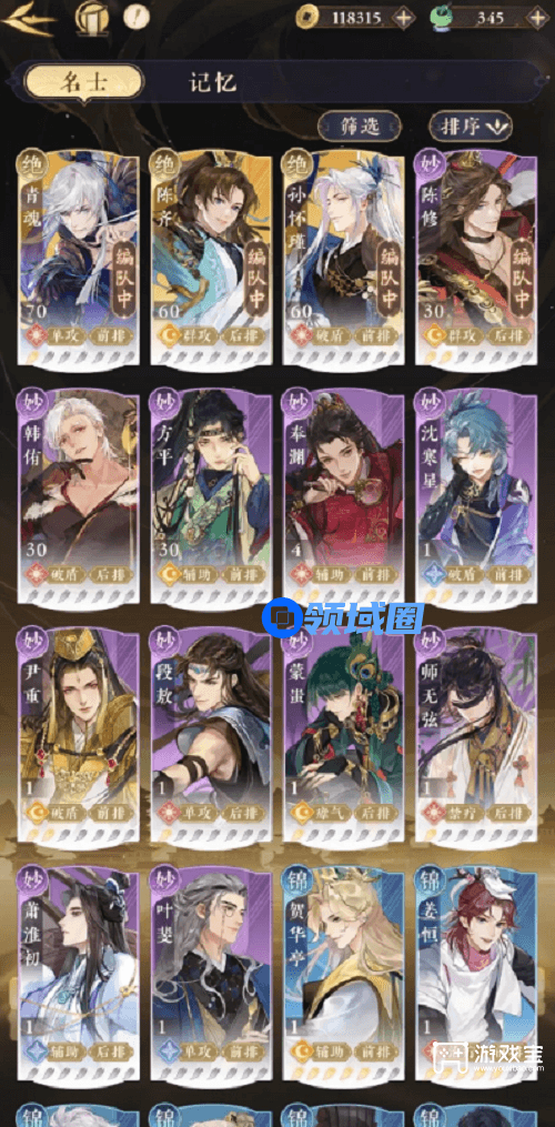 2、T1角色:朱盈、吴亥、拓跋煜、陆鸣、青魂、方平。