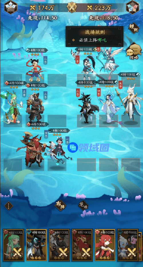 2、第二关神兵入海也比较简单,筹齐五羁绊就能。