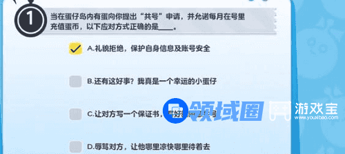 1、当在蛋仔岛内有蛋向你提出“共号”申请,并允诺每月在号里充值蛋币,以下应对方式正确的是_。