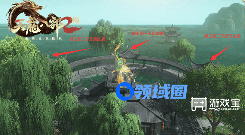 6、我们直接跳到头顶最高处的建筑,你会看到一个半圆形的长条建筑,建筑一共有三处亭子,蜂王第一次就出现在正中间的亭子上方,我们直接轻功跳过去对话就行了。