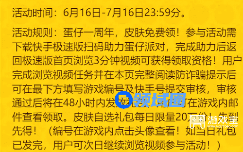 3、玩家需要下载快手极速版扫码助力蛋仔派对并且回到首页浏览3分钟视频才可以领取,如果没有完成这个任务的话是无法领取的。